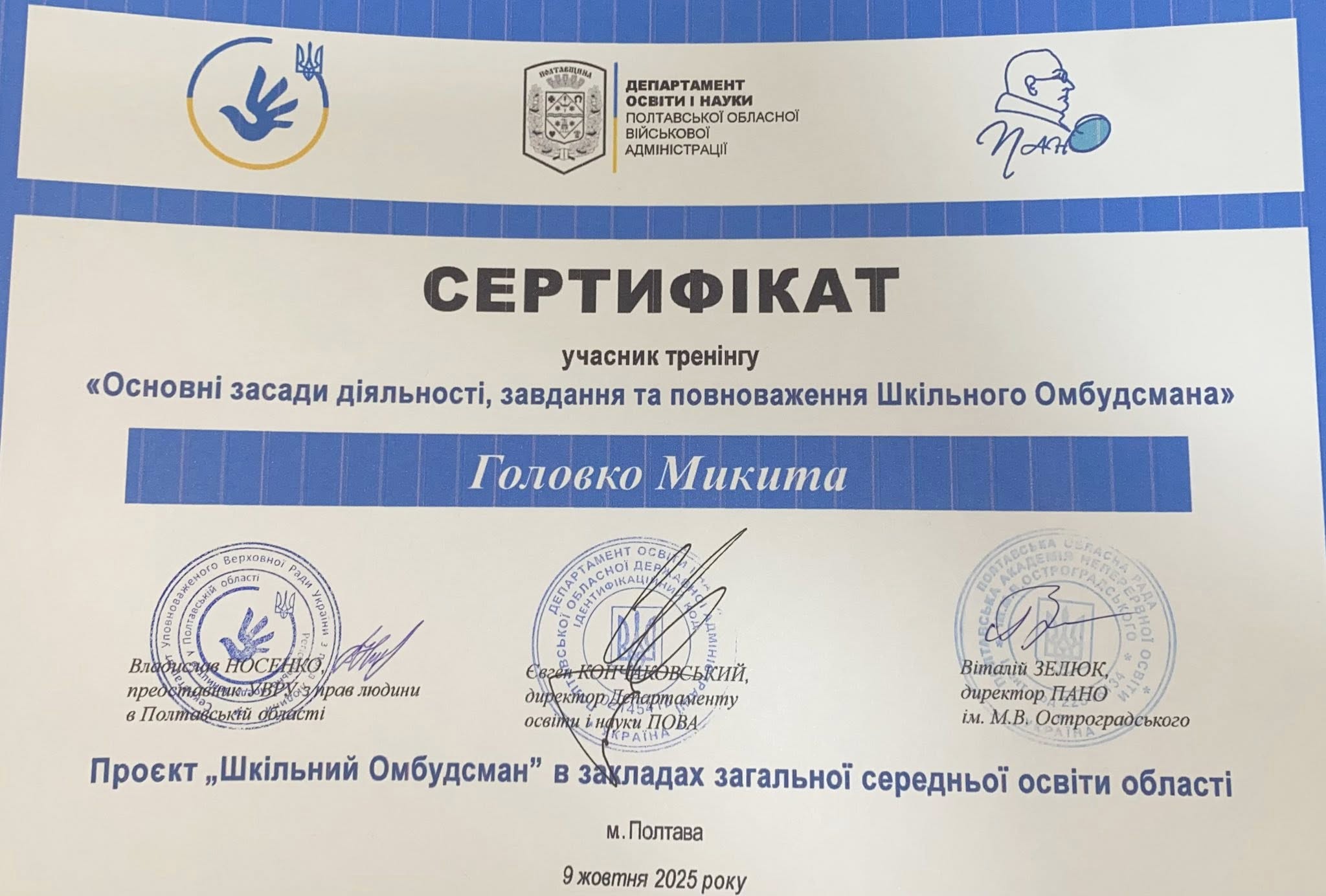 Міський голова наголосив, що Кременчук став першою громадою області, де реалізується цей важливий проєкт. Його мета — навчити дітей захищати свої права, підтримувати одне одного та створювати у школах безпечне, дружнє середовище.